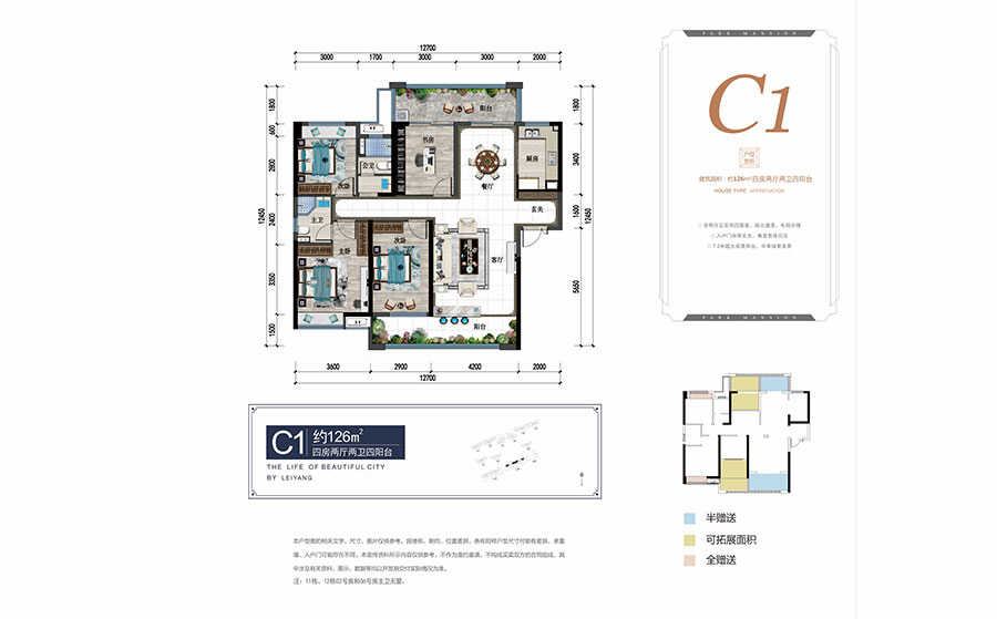 戶型介紹:120-129㎡ 三房二廳、140㎡ 四房二廳
