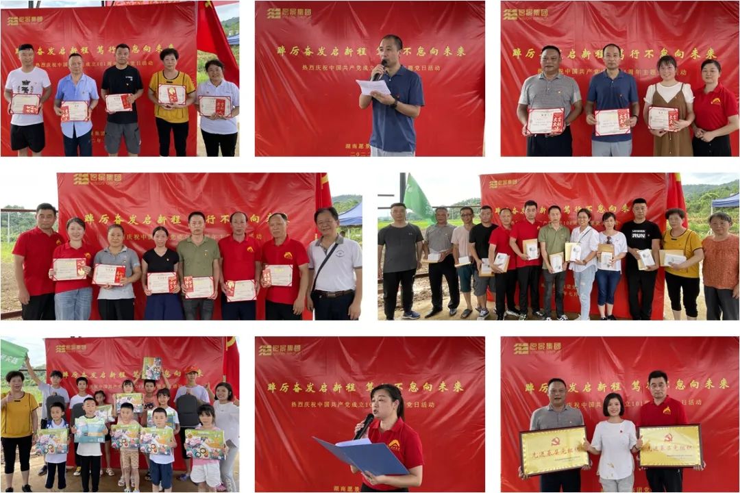 勞動結束后,在農業基地全體黨員舉行了一場簡樸而熱烈的慶祝中國共產黨成立101周年的七一慶祝大會。會上集團黨委向今年的優秀共產黨員、優秀黨務工作者、先進支部予以表彰頒獎,對學習強國學習積分排名前十的學習標兵進行表揚,也為積極參加勞動實踐表現優秀的愿景少年們頒發了小獎品,送上爸媽工作單位對他們的一片關心和關愛之情。黨委書記張嬌同志以講黨課形式,向全體黨員分享了對黨的認識、對公司的認識、以及作為新時代企業黨員怎么擔當作為。希望全體黨員、積極分子珍惜當下,銘記黨恩、感恩公司,從提高黨員意識作表率、加強學習提升工作能力、立足崗位實干貢獻三個方面增強擔當作為,勉勵大家同心同德,一起加油努力,把愿景建設更美好。