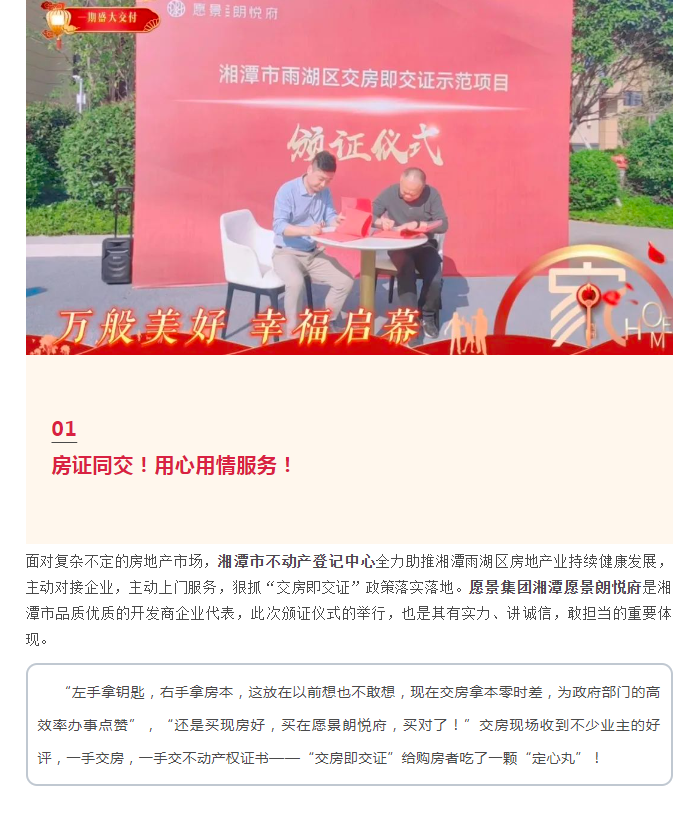 湘潭-愿景朗悅府 交房即交證,美好“證”當時,愿景朗悅府交房頒證儀式完美落幕