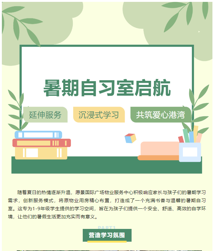 永州-愿景國際廣場 愿京物業暑期自習室啟航