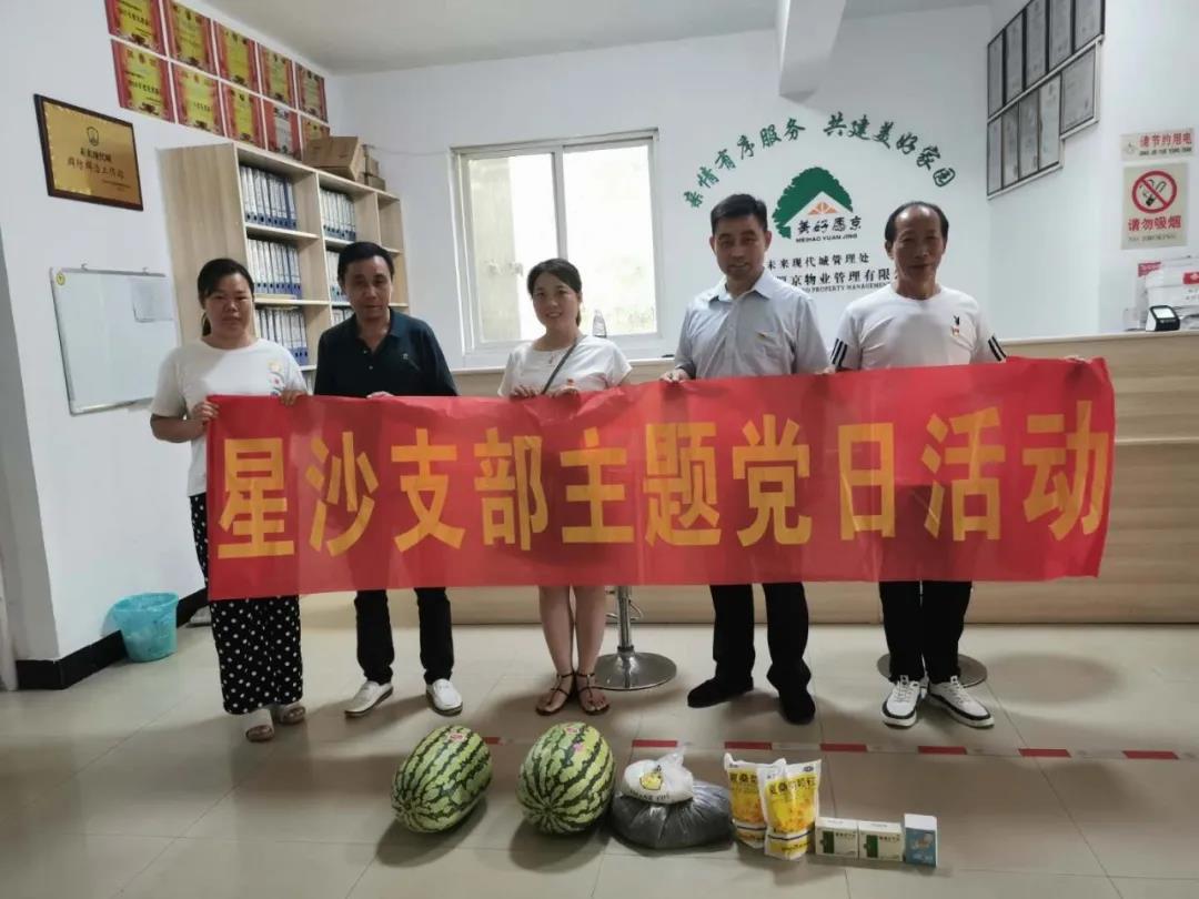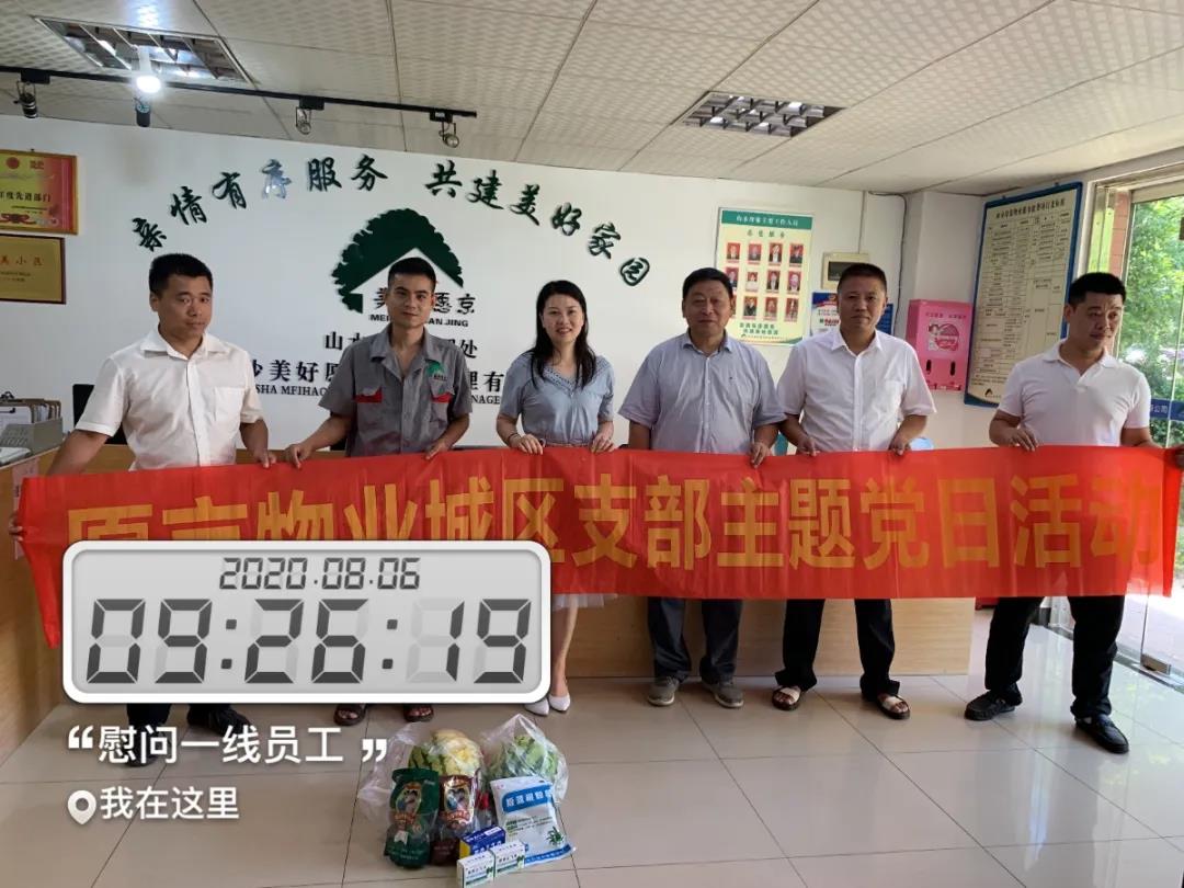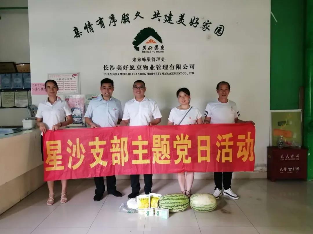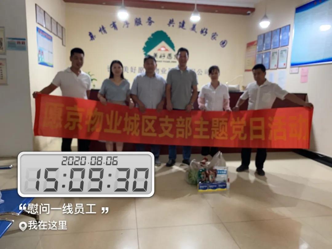 為保障員工的身體健康,2020年8月,長沙美好愿京物業管理有限公司城區黨支部易楊書記、組織委員甘正軍同志、宣傳委員唐蘭霞同志和星沙黨支部穆曉寶書記、組織委員姜賽同志、黨員張森林同志開展了夏季清涼物資發放慰問活動,走訪慰問高溫環境下堅守在崗位上的所有員工,為他們送上防暑降溫物品,感謝所有員工的辛勤付出!