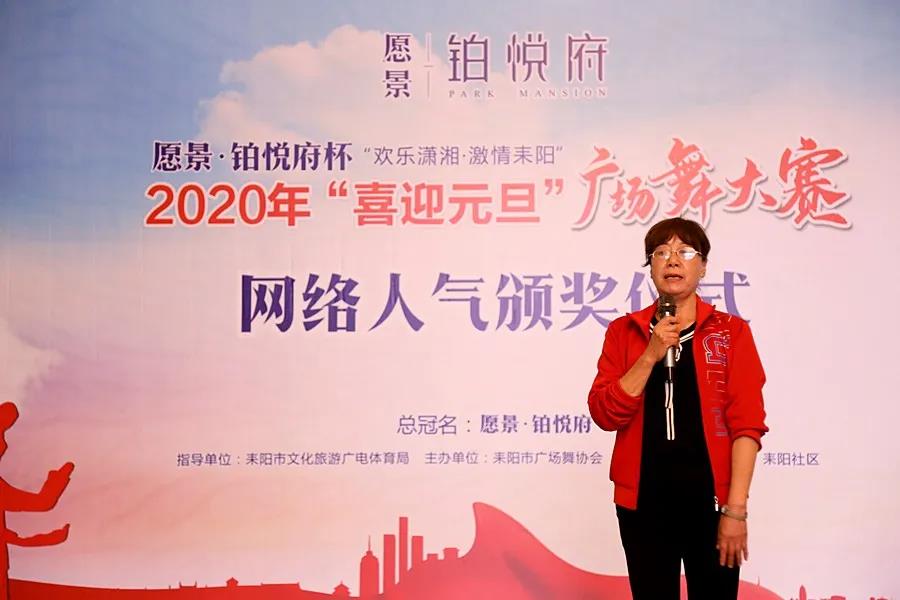 2020年10月25日,正值重陽佳節(jié),由耒陽市文化旅游廣電體育局指導(dǎo),市廣場舞協(xié)會主辦,中橋傳媒、耒陽社區(qū)承辦的愿景·鉑悅府杯“歡樂瀟湘·激情耒陽”2020年“喜迎元旦”廣場舞大賽網(wǎng)絡(luò)人氣頒獎(jiǎng)儀式在愿景·鉑悅府營銷中心盛大啟動。