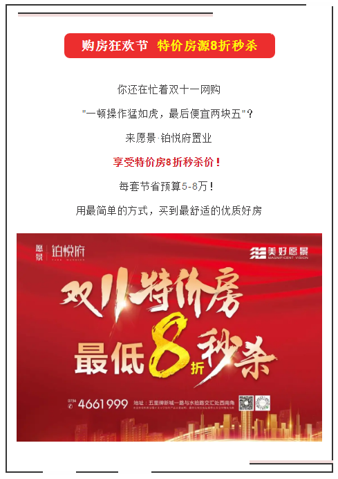 三重大禮,8折秒殺價!愿景·鉑悅府最惠購房節來襲~