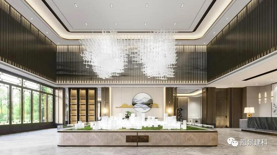 1. 該項目屬地產(chǎn)類營銷接待中心的室內(nèi)設(shè)計項目,設(shè)計范圍為單體建筑1-2層,設(shè)計面積3088.20平方米;設(shè)計內(nèi)容包括:接待、展示、洽談、辦公等各主要及相應(yīng)配套功能空間。由東方“山水、禮儀”為文化主題,融入現(xiàn)代體驗式接待理念展開空間設(shè)計。以傳統(tǒng)文化的內(nèi)涵、先進的智能科技、環(huán)保的裝配速度、全面的物管(云)服務(wù)來傳輸和呈現(xiàn)該品牌地產(chǎn)商期望給業(yè)主們打造的未來生活品質(zhì);