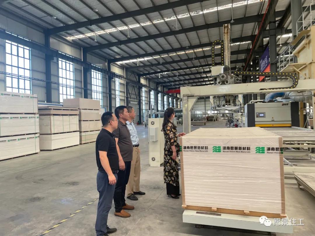 7月8日上午,湖南省住宅產(chǎn)業(yè)化促進(jìn)會(huì)裝配式裝修分會(huì)副秘書(shū)長(zhǎng)康強(qiáng)新、辦公室主任康一涓、干事胡遠(yuǎn)晴一行到訪愿景住工,公司總經(jīng)理謝志鵬和營(yíng)銷(xiāo)總監(jiān)謝新林帶領(lǐng)康秘書(shū)長(zhǎng)一行深入硅酸鈣裝飾板生產(chǎn)車(chē)間、門(mén)窗生產(chǎn)車(chē)間、涂料生產(chǎn)車(chē)間、預(yù)制構(gòu)件生產(chǎn)車(chē)間,讓領(lǐng)導(dǎo)現(xiàn)場(chǎng)檢查各項(xiàng)工作,領(lǐng)導(dǎo)一行詳細(xì)查看了解了我司的生產(chǎn)流程、產(chǎn)品質(zhì)量及工作流程等情況。接著又來(lái)到了公司的一號(hào)別墅、二號(hào)別墅以及裝配式內(nèi)裝修展示區(qū)考察,謝總向領(lǐng)導(dǎo)們一一介紹了施工工藝和裝修特色,并回答了領(lǐng)導(dǎo)們提出的各種問(wèn)題,領(lǐng)導(dǎo)對(duì)愿景住工的裝配式內(nèi)裝修材料給予了極大的贊許。