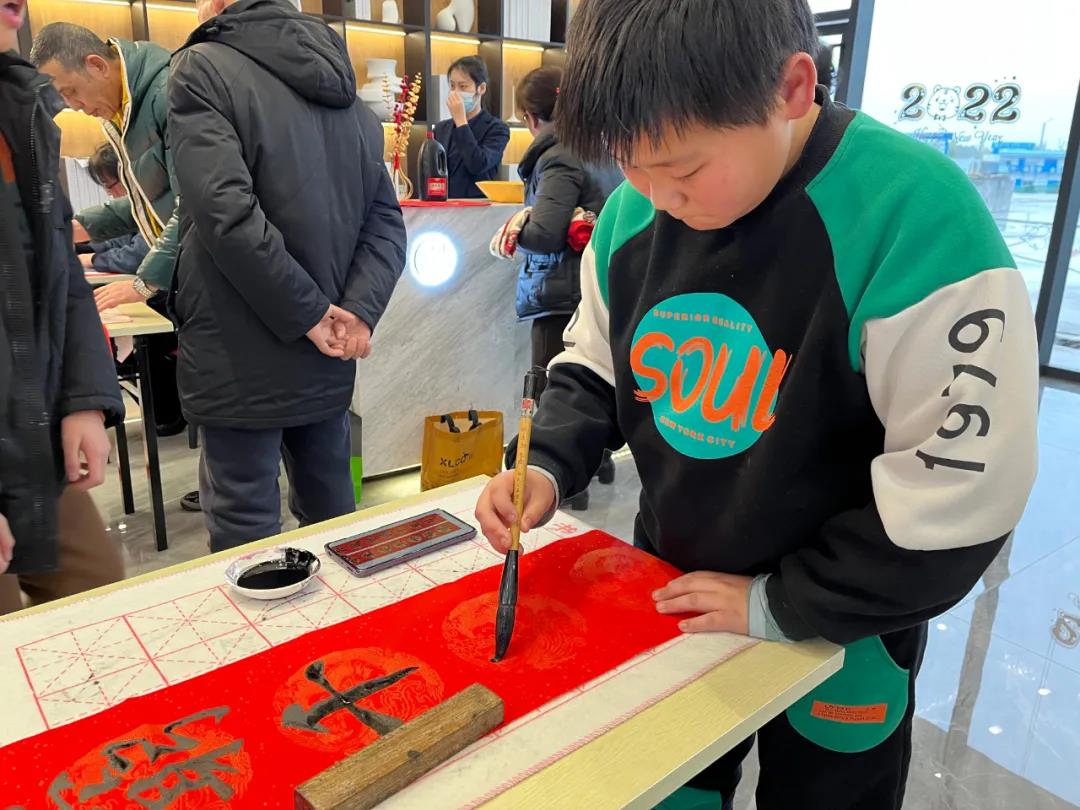 活動當天,數位知名書法家現場揮毫。 紅紙翰墨上厚重筆力,字字滲透著祝福。沾墨、起筆、收筆,一起一落之間,真摯的新年祈愿躍然紙上,為在場嘉賓送上獨具一格的賀歲致辭。